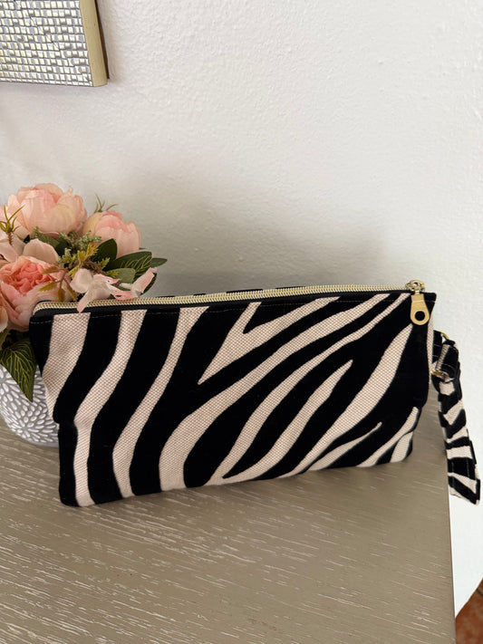 Black Zebra Clutch Bag, Velvet, Handmade