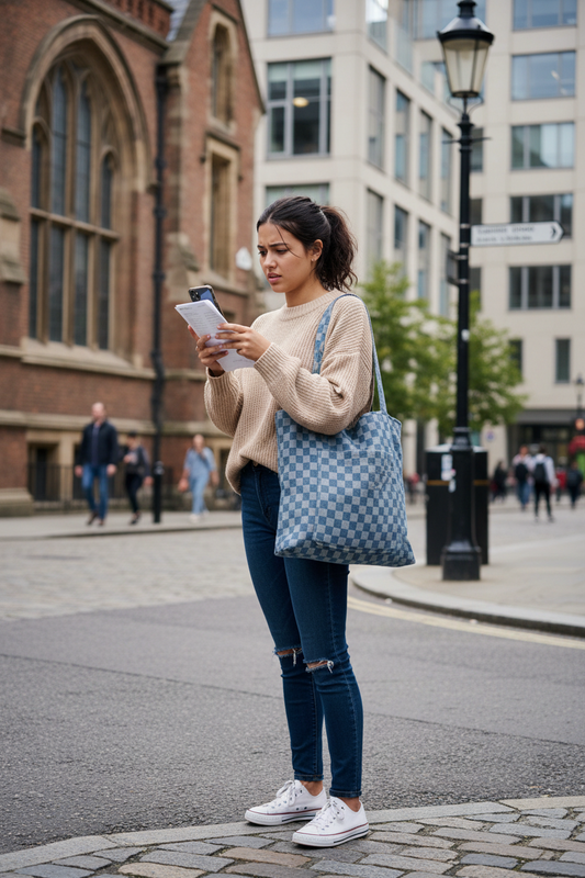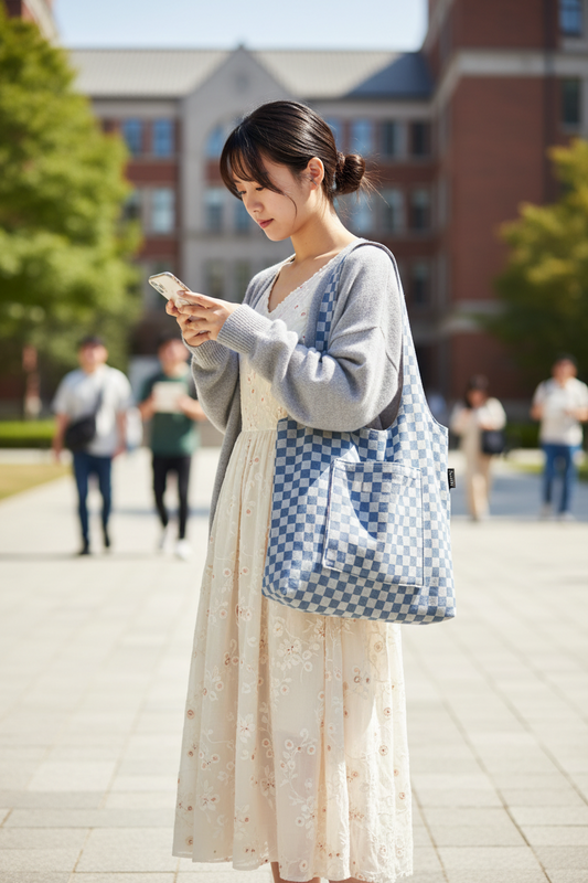 Checkered Tote Bag, Shoulder Bag, Handmade