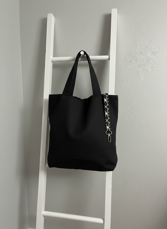 Boho Medium Tote Bag for Women, Black and white, 2-pieces, Handmade Bag