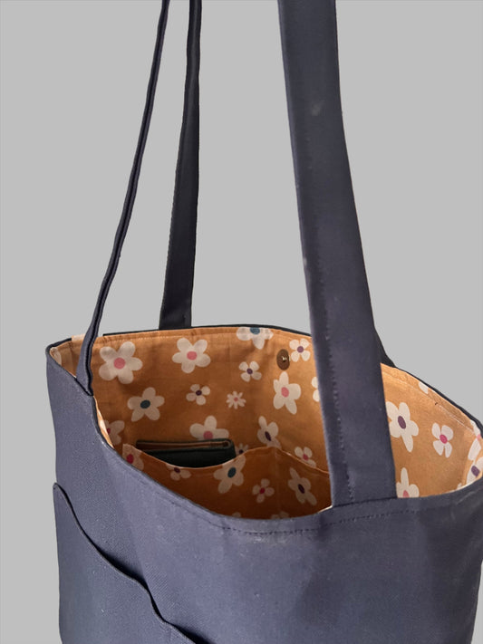 Navy Blue Tote Bag, Shoulder Bag, Handmade Small Women Bag, 2PCS