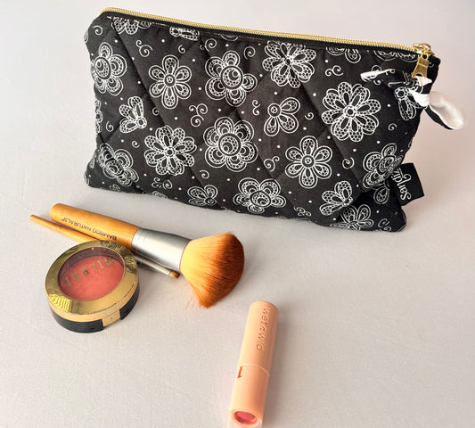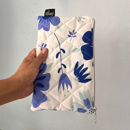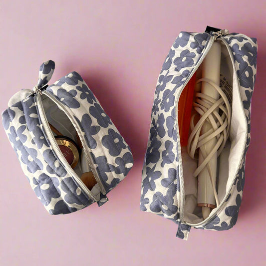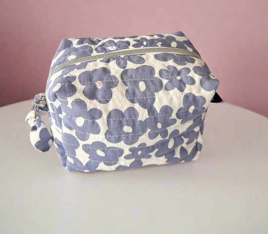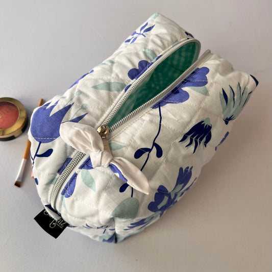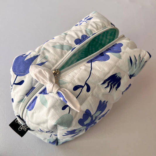 Blue Flowers Makeup Bag, Cotton, Small, Handmade