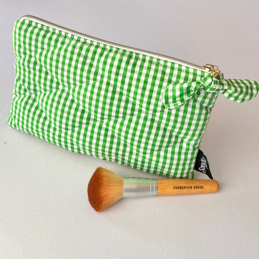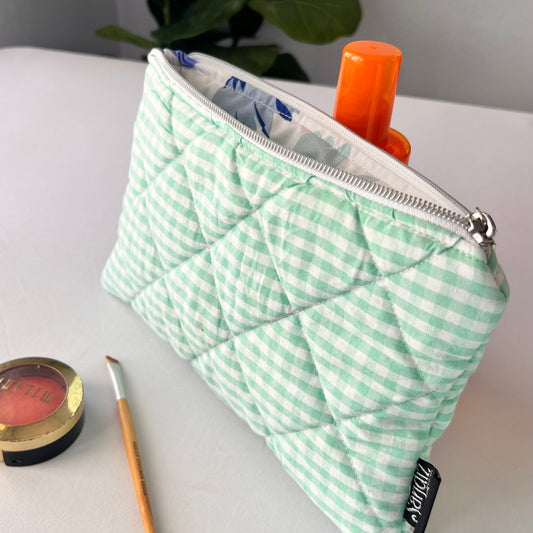Green Lines Gingham Make Up Bag, , Small, Handmade