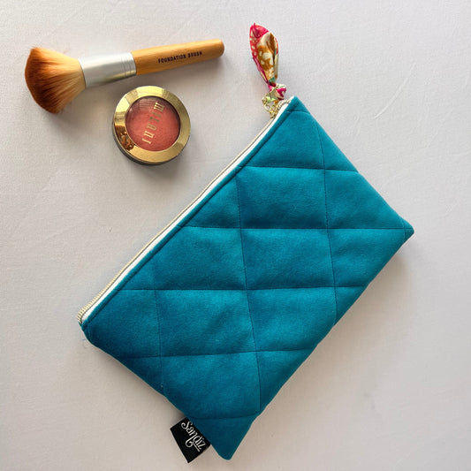 Blue Beach Make Up Bag, Velvet, Small, Handmade
