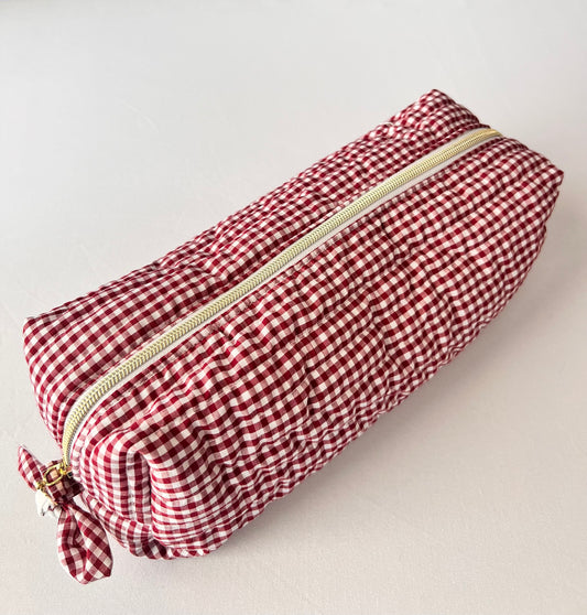 2 PCS Burgundy Sun Travel Makeup Bag Set and Organizer, Quilted, Handmade