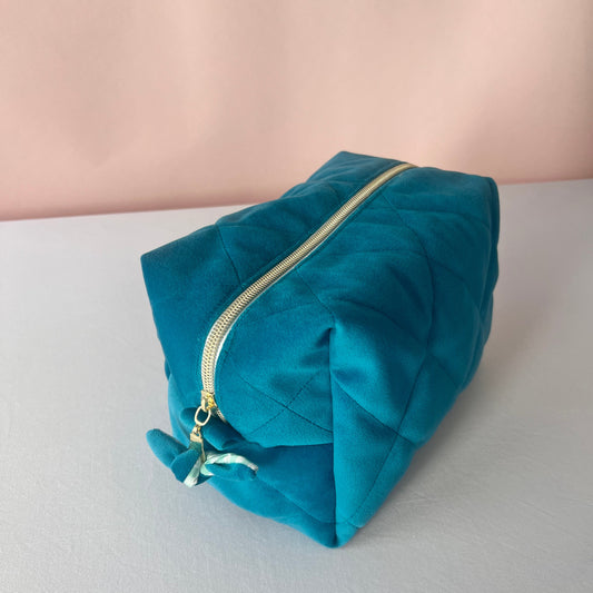 Blue Beach Make Up Bag, Velvet, Large, Handmade