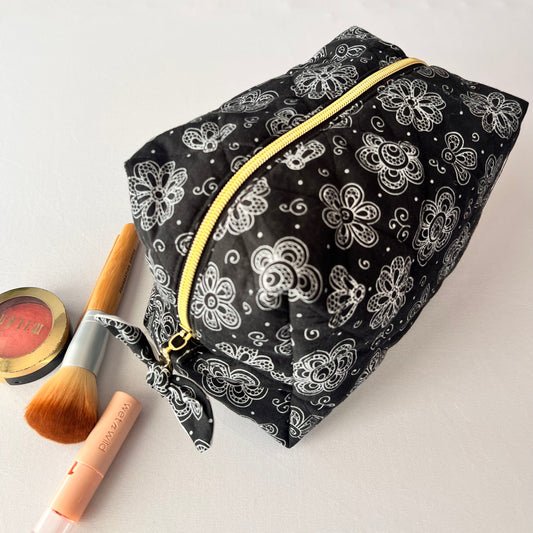 Black Moon Makeup Bag, Cotton, Large, Handmade