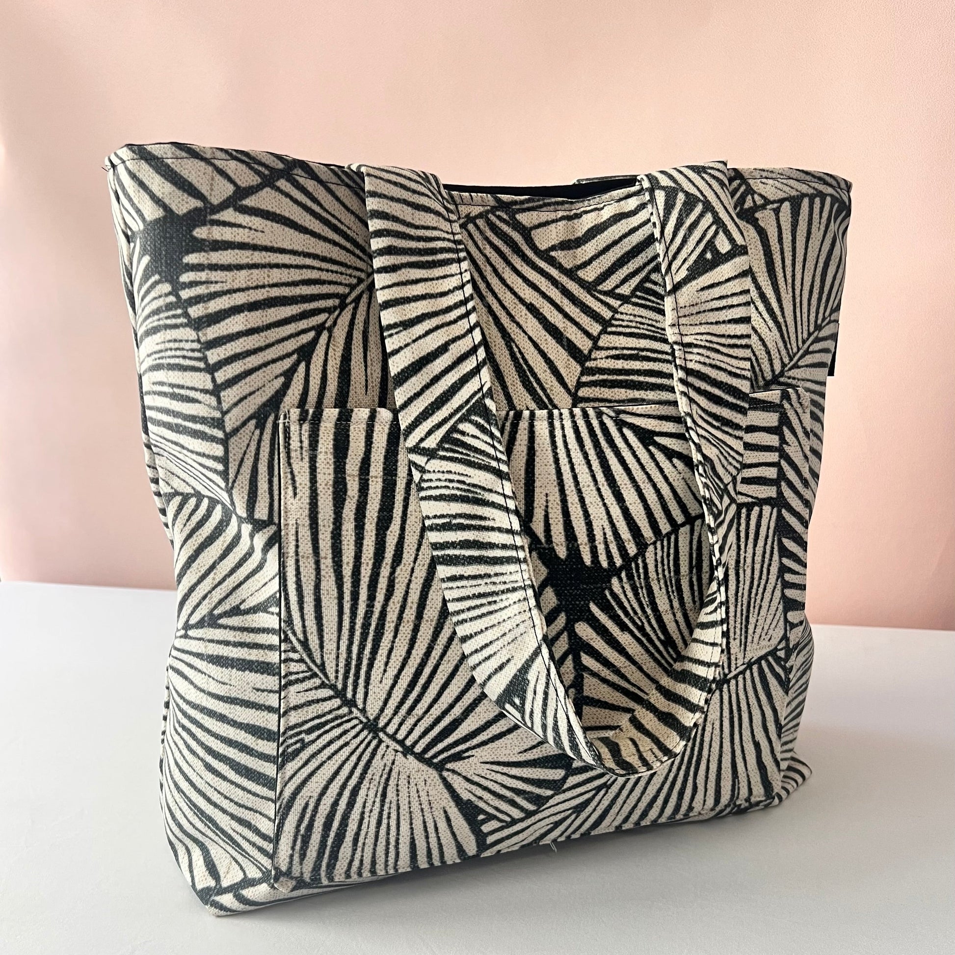 Leaves Shadows Tote bag, Black and Beige Handmade Tote Bag